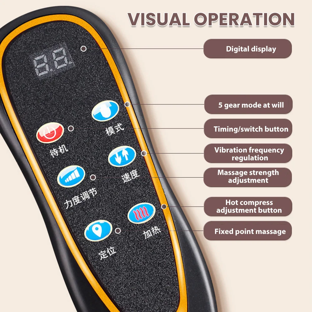 Relaxation corporelle entière **Ressentez un soulagement ultime avec notre tapis de massage multifonctionnel, qui propose 10 points de massage ciblés pour votre dos, vos fesses, votre taille, vos cuisses et vos mollets. La thérapie de chauffage lombaire intégrée apaise les muscles tendus, libérant le stress et la fatigue après une longue journée. Choisissez parmi 9 modes de vibration, 9 modes de sélection de points, 3 niveaux de chauffage et 9 niveaux d’intensité/vitesse pour une expérience de massage entièrement personnalisable.